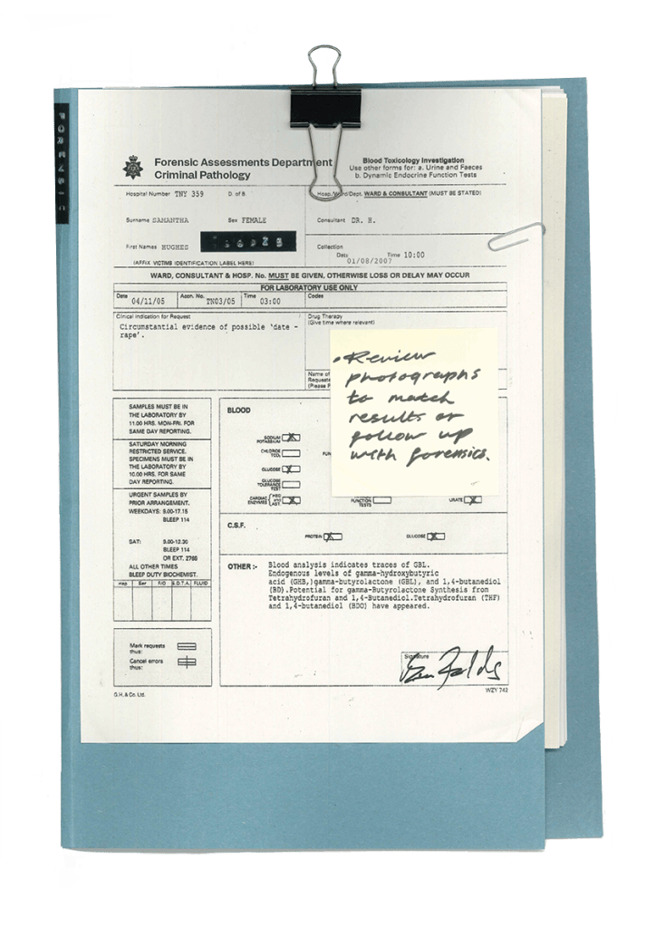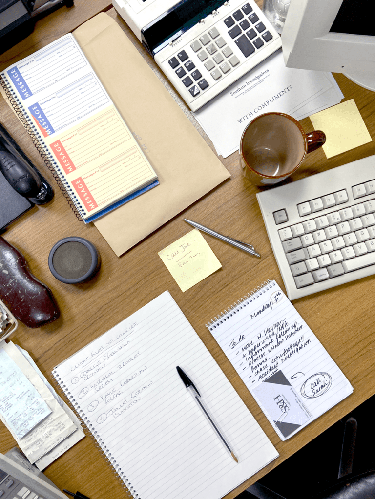 Handwritten notes for investigation office.