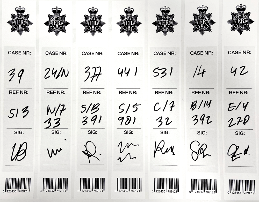 Other work not shown: visitor passes, BBC paperwork, house of commons paperwork, certificates, audio tape designs, posters for outside tube station, accountancy paperwork, police magazines, menu cards, lottery tickets, fire evacuation plan, notice board posters misc, handwritten hero prop greeting card, Christmas cards, business cards, birthday cards, police office paperwork covers, snooker score sheets, chili jam labels, bills paperwork, stickers.